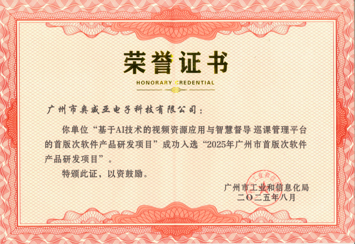奧威亞入選2025年廣州市首版次軟件產(chǎn)品...